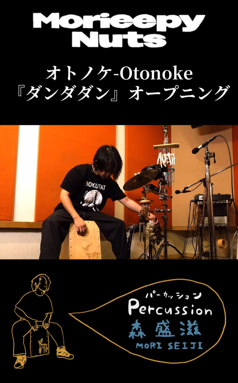 4カメ+縦動画1カメで撮り、音声は4回線でcajonの中の音、cajonの正面の音、シンバル類、アンビエントなどを2系統で録ってます。